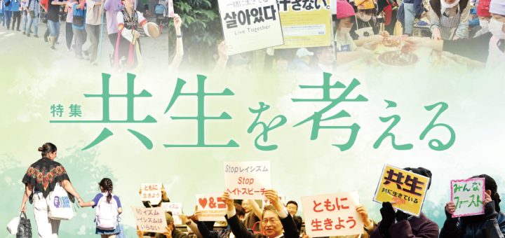 「日本人ファースト」の掛け声に代表される外国人敵視、排斥の風潮が高まりつつある。一方で、排外思想にNOを突きつけ、さまざまな人種、民族、アイデンティティを持つ人々が違いを認め合いながら共に生きる取り組みを草の根から実践する人々もいる。今月号の特集は、「共生を考える」。運動現場からの報告、関連の書籍・映像作品、識者の寄稿などを通じて、「共に生きること」について考えを深めてみたい。