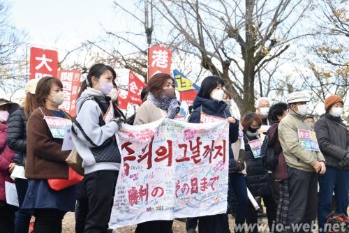 続いてマイクをとった大阪朝鮮中高級学校オモニ会の梁淑子会長(44)は、今後も朝鮮学校を守るたたかいを続けていくには「なぜ朝鮮学校が日本に存在するのかをしっかりと認識しなければならない」と強調しながら、1945年8月の祖国解放後、1世、2世が血と汗を流して朝鮮学校を守ってきた歴史について伝えた。梁会長は「大阪の、全国のオモニたちは強くて負けない。勝利のその日まで先頭に立って、たたかっていく」と言葉を結んだ。
