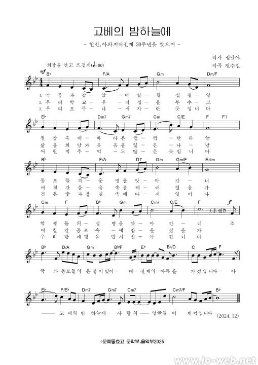 クライマックスでは、阪神淡路大震災から30年を迎え手がけられた歌「神戸の夜空に(고베의 밤하늘에)」(作詞:沈達也、作曲:千守日)を合唱した。