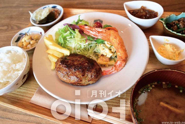 食べ応えのある特製ハンバーグは、家庭的な味を出そうとあいびき肉を使用している。「実は質量の半分が玉ねぎなんですよ」―食後、オーナーの言葉にびっくり。出来上がりまで2日。手間暇かけている。スペシャルランチのエビフライは、薄い衣に包まれた身がしっかりとしていて、エビの旨味がストレートに感じられる。みずみずしい旬の野菜も隠れた「刺客」だ。