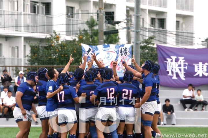 東京朝高のグラウンドで迎えた初戦・準々決勝(10月19日)の相手は早稲田大学高等学院。開始直後に先制を許すも、モールを起点としたトライでペースを取り戻し、ディフェンスで失点を抑える。後半、183cm、103kgのNO8河俊輝主将が相手を押しのけながら豪快なトライ。けがに悩まされたHO梁賢宇(3年)が初の公式戦でトライを取るなど得点を重ね、64―5の快勝で試合を終えた。普段はSHで、この日1年生ながらゲームメイクを託されたSO康了仁は「いろいろ考えずにできることをしようとプレーした。結果、自分でトライも取れたのでよかった」と振り返った。監督の呉昇哲は「チームの出来としては70%。公式戦の難しさを感じた」と評した。…(敬称略)