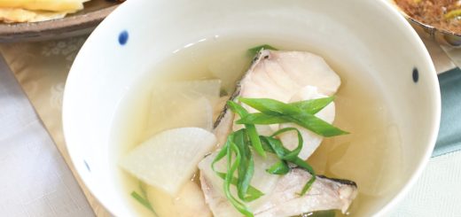 - ③が沸いたら、アクを取り、白だしを加えて、塩で味を整える。