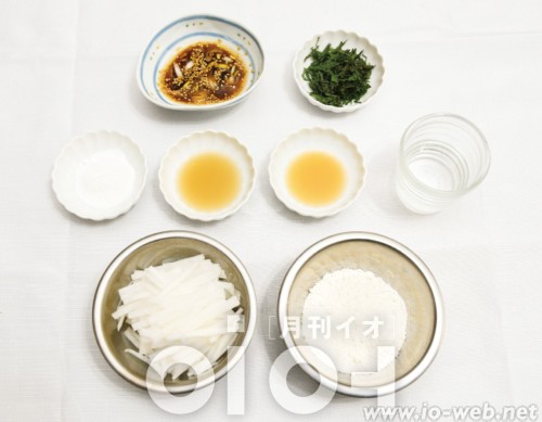 - 大根は千切りにしておく。