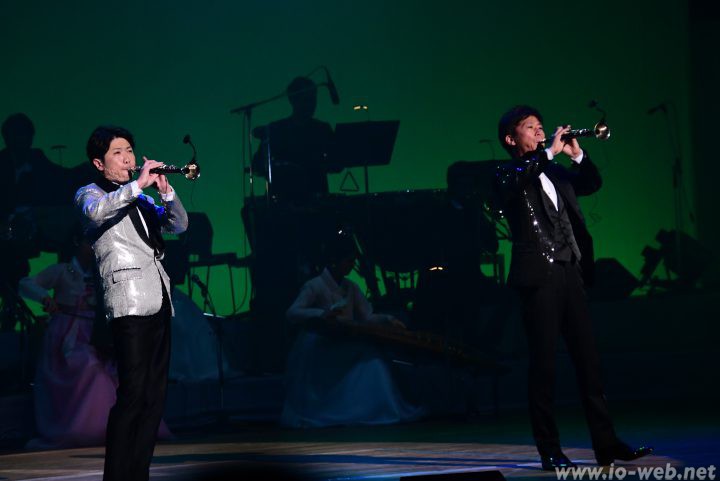 オープニングの混声重唱と舞踊「明けゆく空に」から、男声独唱「南山の青い松」、カヤグム独奏「オンヘヤ」、独舞「双扇の舞」、混声重唱「熱き想いで」、二人舞「朝鮮将棋」、ソヘグム4重奏「ひばり」、チャンセナプ二重奏「龍岡キナリ」、舞踊「松~風雪をのり越え」、チャンゴ重奏と舞踊「歓喜」まで2021年度の金剛山歌劇団アンサンブル公演「솔SOLL」の16演目が舞台に上がった。