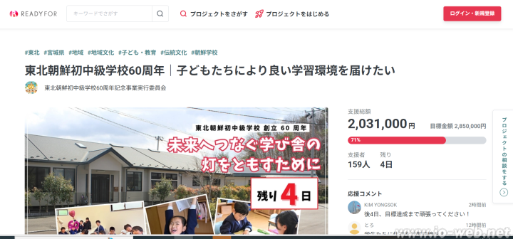 募集期限まであと5日。一人でも多くの人々の支援をお願いしたい。
