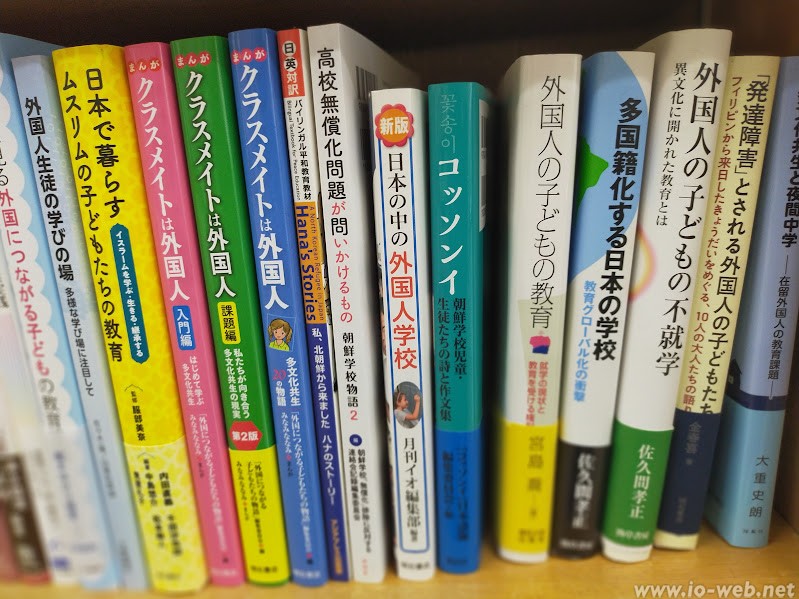 まず月刊イオ編集部編著の『新版 日本の中の外国人学校』。イオの誌面で連載で紹介した日本にある外国人学校のルポをまとめたもの。朝鮮学校も含め18の学校を紹介している。4階の教育問題のコーナーに置かれていた。新版の前の最初の『日本の中の外国人学校』は2006年11月に発行された。