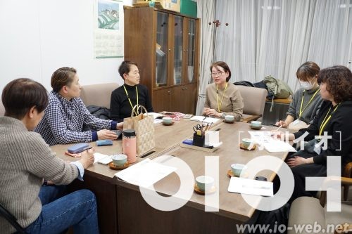 15時45分、青木マキさんの出迎えを受けて面談が始まった。コンさんが取り組みの趣旨を再度説明したあと、女盟神奈川県本部のペク・チュビ子女部長が発言。近年、神奈川朝鮮中高級学校の生徒たちが活躍したニュースや朝鮮学校支援について話したあと、自身の思いを述べた。